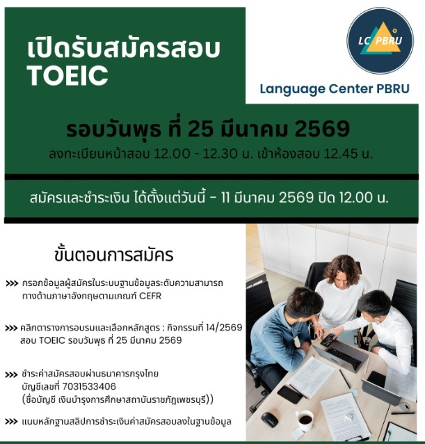เปิดรับสมัครสอบ TOEICรอบวันพุธ ที่ 25 มีนาคม พ.ศ. 2569 (กิจกรรมที่ 14/2569)