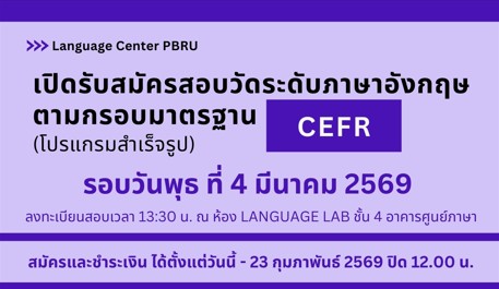 เปิดรับสมัครกิจกรรมที่ 15/2569 สอบวัดระดับภาษาอังกฤษตามกรอบมาตรฐาน CEFR รอบวันพุธ ที่ 4 มีนาคม พ.ศ. 2569