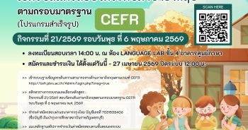 เปิดรับสมัครกิจกรรมที่ 17/2569 สอบวัดระดับภาษาอังกฤษตามกรอบมาตรฐาน CEFR รอบวันพุธ ที่ 1 เมษายน พ.ศ. 2569