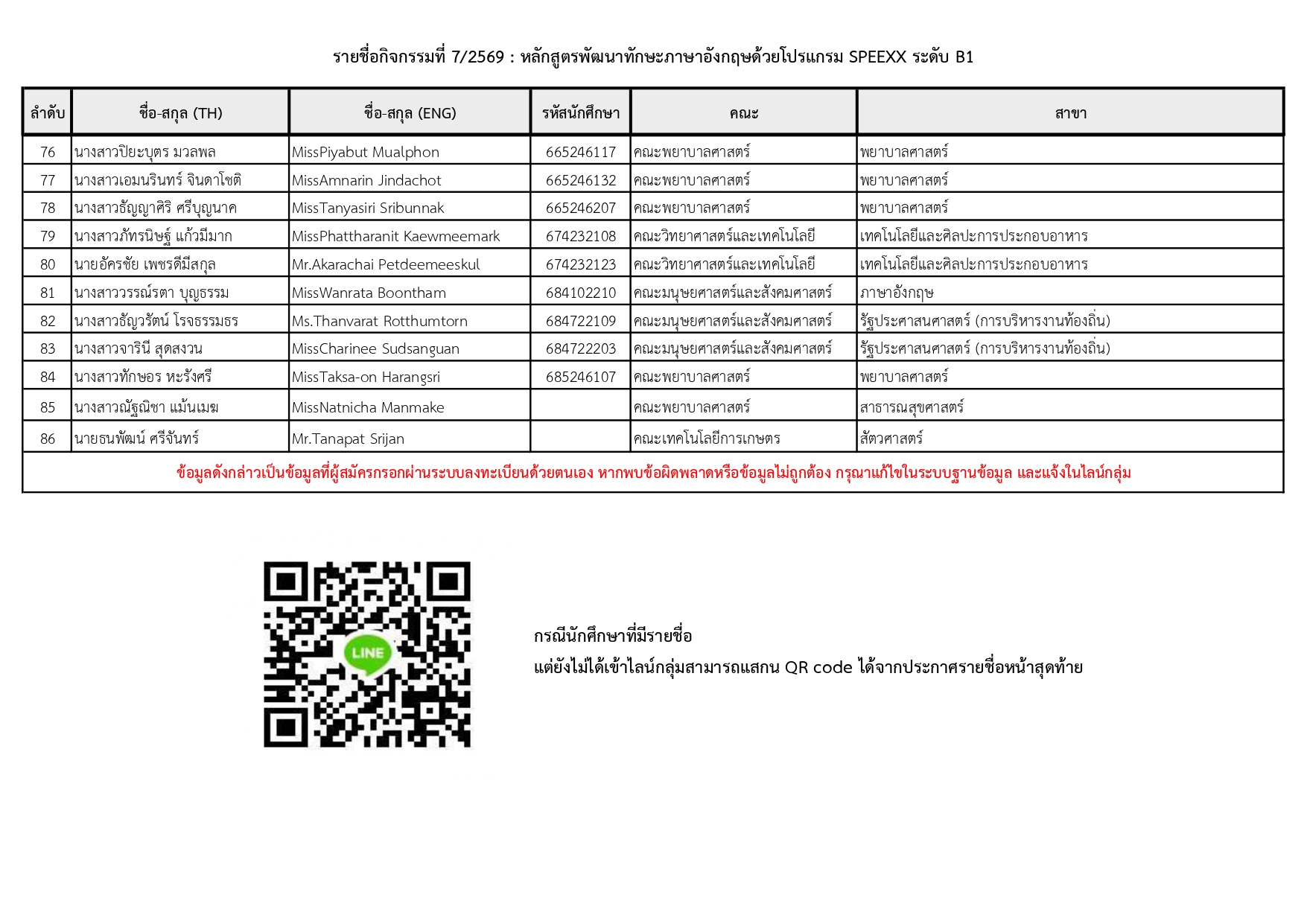 ประกาศรายชื่อผู้สมัครกิจกรรมที่ 7/2569
