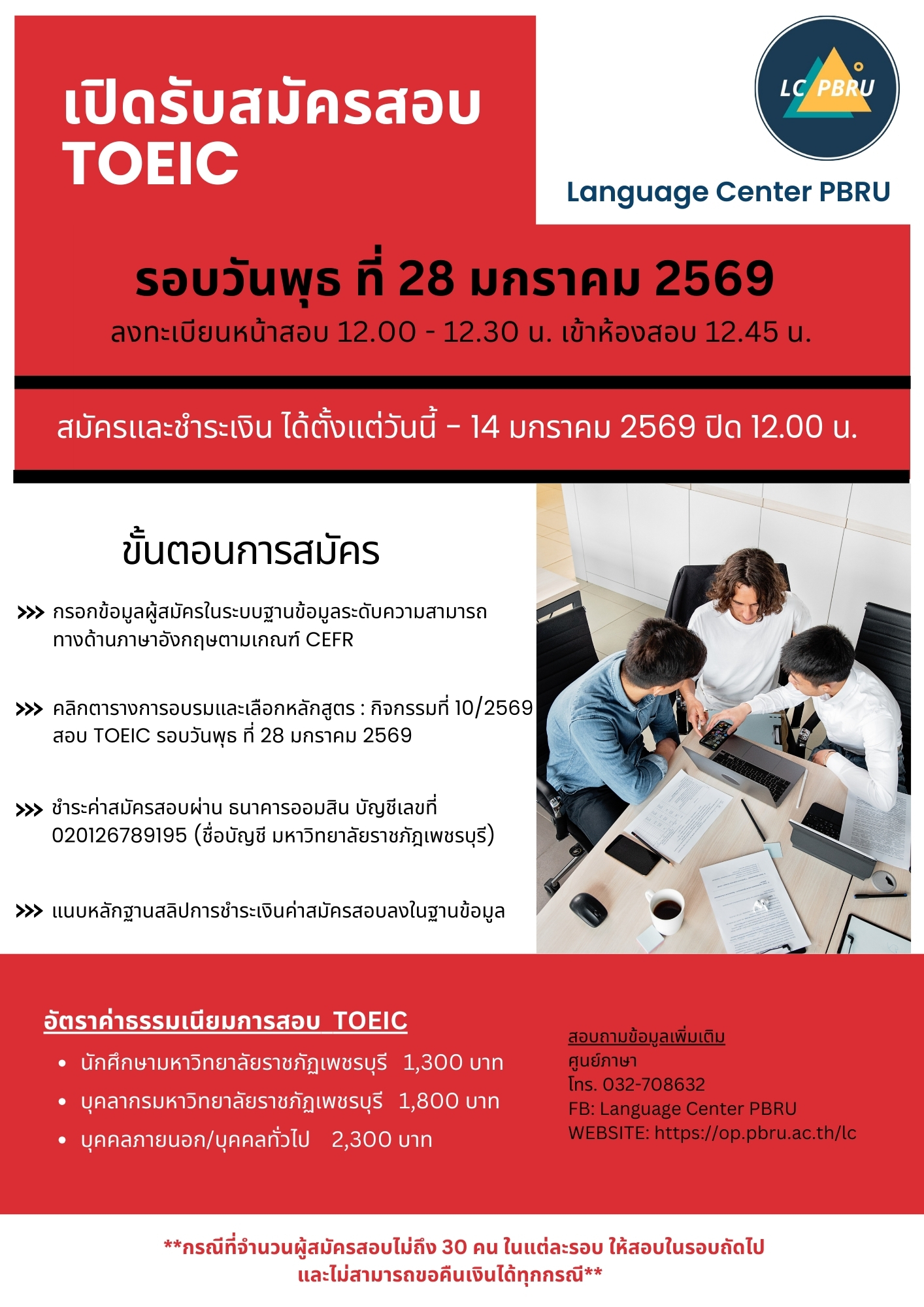 āđ€āļ›āļīāļ”āļĢāļąāļšāļŠāļĄāļąāļ„āļĢāļŠāļ­āļš TOEICāļĢāļ­āļšāļ§āļąāļ™āļžāļļāļ˜ āļ—āļĩāđˆ 28 āļĄāļāļĢāļēāļ„āļĄ 2569