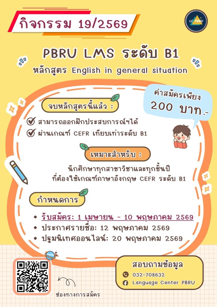 ❤️ กิจกรรมที่ 19/2569 หลักสูตรพัฒนาทักษะภาษาอังกฤษตามกรอบมาตรฐาน CEFR ระดับ B1 ผ่านระบบ PBRU LMS (online)❤️
