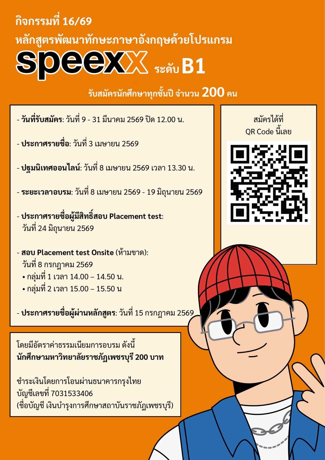 กิจกรรมใหม่ เปิดรับสมัครแล้ว กิจกรรมที่ 16/2569 หลักสูตรพัฒนาทักษะภาษาอังกฤษด้วยโปรแกรม SPEEXX ระดับ B1